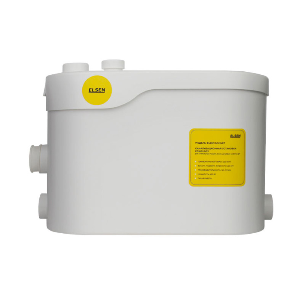 Канализационная насосная установка ELSEN SaniJet EDW01.003 предназначена для эффективного отвода сточных вод в тех случаях, когда организация традиционной самотечной канализации невозможна. Эта модель, не предполагающая подключения к унитазу, идеально подходит для обслуживания таких сантехнических приборов, как душевые кабины, раковины, ванны, посудомоечные и стиральные машины, расположенных ниже уровня центральной канализационной магистрали.