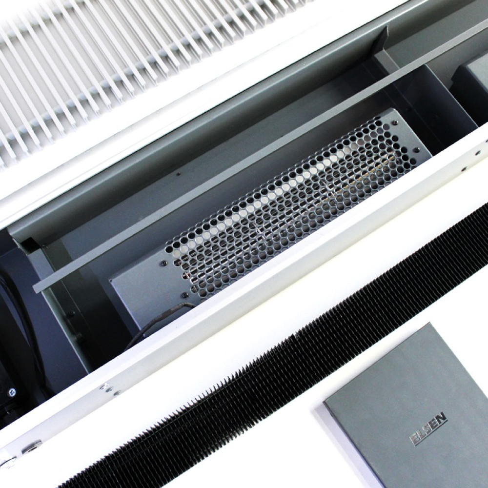 ELSEN EKQ 300×150×1500 мм — высококачественный внутрипольный конвектор с принудительной конвекцией, выполненный в элегантном алюминии. Этот компактный прибор отличается высоким уровнем теплоотдачи и тихой работой благодаря встроенному вентилятору. Идеально подходит для монтажа в пол помещений с панорамным остеклением, также возможен монтаж в подоконник, обеспечивает равномерное распределение тепла даже в больших помещениях. Конвектор может применяться, как самостоятельный источник тепла, так и вспомогательным источником тепла с системами теплого пола или стандартного радиаторного отопления.